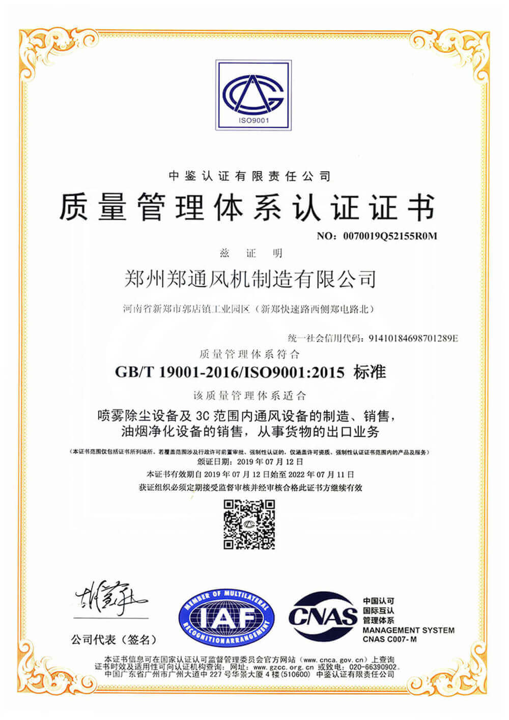 質(zhì)量管理體系認(rèn)證證書(shū)